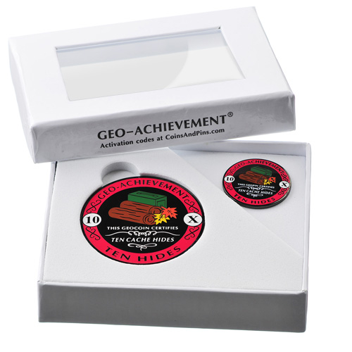 Tags: 10, achievement, geocoin, geocoins, hides