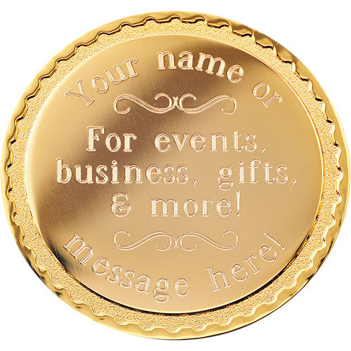 These are professional, high quality custom engraveable coins that you can have engraved with any text of your choice. If you only need a few coins made and have a tight budget, then these coins are the perfect alternative to having an entire new custom coin made. The engraving cost is included in the coin price.
