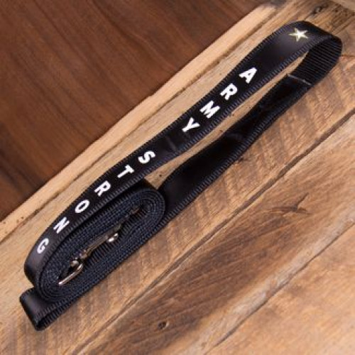Army dogs have undying love for their soldier owners, so show them your affection with this striking set. The set comes with a durable black nylon leash that is 1" wide by 66". Each leash has a black satin overlay with repeating Army stars in white and gold, and the words "ARMY DOG" in bright white.
