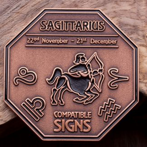 Do you ever question if you will be compatible with a new partner, or why you don't get along with certain people? The answer may have to do with your astrological sign. Introducing a unique series of collectible coins that feature amazing facets of the Zodiac. These 2" antique copper coins are octagon in shape, and raised areas of metal allow for key design elements to be paint filled with black. The front sides feature the zodiac iconography along with compatible signs. The backsides display the sign's strengths and weaknesses, as well as the sign's own symbol. Order your own sign, and your significant other's sign.